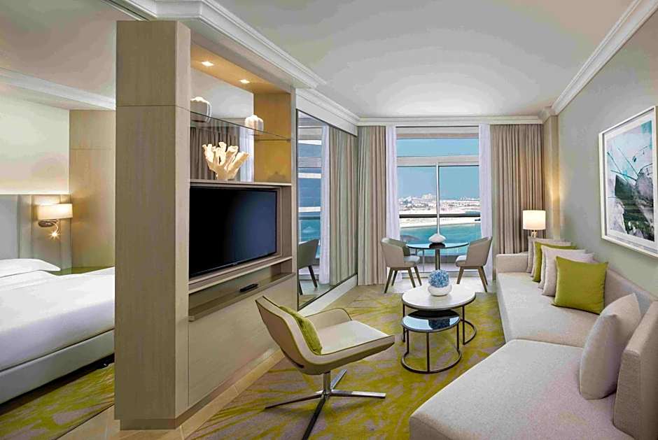Guests at Beach Rotana can enjoy a range of amenities such as a spa, wellness packages, private beach area, and an outdoor swimming pool. Kids can splash around in the children's pool while adults relax in the Turkish steam bath or sauna. The hotel also offers a fitness center, tennis court, and various dining options including room service and kids' meals. Free Wi-Fi, parking, and air conditioning add to the convenience of this luxurious stay.