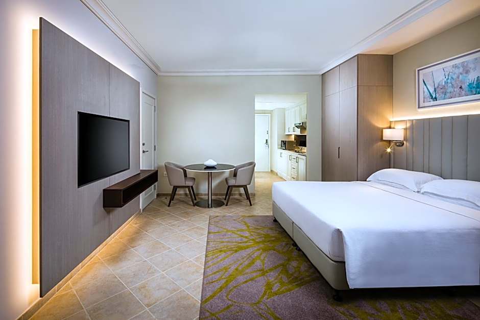 Guests at Beach Rotana – All Suites will find ample opportunities to relax and stay active with two stunning outdoor pools. The first pool, available all year round, is exclusively for adults, providing a tranquil and serene atmosphere for those seeking a peaceful swim or sunbathing experience. The second pool caters to families and features a children's pool section where kids can safely have fun in the water, allowing parents to unwind worry-free. With the pools set against the picturesque backdrop of the private beach area, guests can enjoy a refreshing dip while soaking in the warm Abu Dhabi sun.